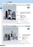 拉伸…(各种材料)拉伸…(各种材料)No.219 STROGRAPH HT试验机No.509 BENDOGRAPH-2 试验机系统2 GENERAL CATALOGUE 111 力学性能1 力学性能力学性能1这台全自动拉伸强度试验机,用于橡胶,配有最新技术的恒温箱.装置由恒温箱、试样(哑铃形)储存单元、标线单元、厚度测量单元、试样输送单元、测量单元、标线跟踪单元(引伸计)、试样卸脱单元和数据处理单元组成. 将试样放置在试样储存单元的抽屉中,拉伸试验按预定的过程,预置的试验条件自动连续地进行. 最大载荷容量:1KN拉伸速度:0.5~500mm/min .14挡有效行程:约700mm标线跟踪:CCD摄像机试样储存单元:最多300个试样的抽屉.数据处理装置:配备恒温箱:室温+20~+100℃JIS K6251、ISO 37主机:3相、AC200V、50/60Hz、约10A恒温箱:3相、AC200V、50/60Hz、9A主机:W1780 X D920 X H2230mm,约500Kg.恒温箱: W630 X D1070 X H1300mm.这台全自动试验机,专用于弯曲试验.除了放置试样外,所有操作包括试验和数据处理由计算机控制自动进行.是一台经济省劳力的试验系统..载荷容量:最大2KN速度:0.5~200mm/min有效行程: 约40mmJIS K7171、ASTM D790、ISO 178单相、AC100V、50/60Hz、15A主机: W900 X D490 X H1470mm,约300Kg.●应用 ●技术指标●参考试验标准●电源 ●装置尺寸和重量●应用 ●技术指标●参考试验标准●电源 ●装置尺寸和重量STROGRAPH HTBENDOGRAPH-AUTOMATED SYSTEM全自动全自动