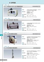 透气性…(纸、布、其他)透气性…(板材)用透气性…(布、其他)No.158 GURLEY 型密度计 No. 750 渗透图形仪 No.869 FRAZIER型 渗透仪 2 GENERAL CATALOGUE 373●应用 ●技术指标●选购件●参考试验标准●电源●装置尺寸和重量●应用●技术指标●参考试验标准●电源●装置尺寸和重量●应用 ●技术指标●电源●装置尺寸和重量用于测量纸张和其他材料的空气透过率.通过自动检测加压筒的下落速率,显示100cc空气的通过时间(抗透气性)和ISO空气透过率.夹持试样方法: 杠杆操作定载荷方法加压筒重量(压力): 567克空气透过率: 25、50、100、200、300ml透过面孔径: 28.6mm(6.45cm2)小型打印机ISO 5636-5、9073-1〜4、7、9092JIS P8117、L1913单相、AC100V、50/60Hz、0.5A.W220 X D230 X H560mm, 约22kg.用于测定布等材料的透气性.对试样施加一定的吸引压力(差压),由空气的流速评价透气性.测量范围: 0.5~500cm3/(cm2•s)或 0.05~50cm3/(cm2•s)测量面积: 5cm2、100cm2设定压力范围: 0~500PaJIS L1096、R3420、ISO 9237、ASTM D737单相、AC100V、50/60Hz、10A. W1200 X D750 X H900mm, 约50kg用于测量多孔材料的透气性.利用对试样产生的压差,由活塞的移动速度评价透气性.气体透过面积:706.86 mm2(Φ30mm)测定压力: 0.67~93.3 KPa.(5~700mmHg)单相、AC100V、50/60Hz、3A.W420 X D250 X H220mm, 约10kg3 化学性能3 化学性能化学性能GURLEY TYPE DENSOMETERPERMEAGRAPHFRAZIER PERMEAMETER