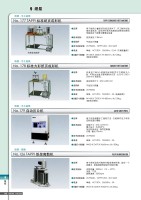 燃烧…(各种材料)纸浆-游离度纸浆-游离度No.123 TAPPI 标准NIAGARA 型实验室打浆机 No.137 加拿大型游离度测试仪 No.174 SCHOPPER-RIEGLER 型游离度试验仪 2 GENERAL CATALOGUE 61 纸浆99 纸浆9 纸浆●应用 ●技术指标●参考试验标准●电源●装置尺寸和重量●应用 ●技术指标●参考试验标准●装置尺寸和重量●应用 ●技术指标●参考试验标准●装置尺寸和重量在纸浆的离散、打击、混合、配料等试验工程中使用. 压力通过杠杆和配重从刀床飞刀侧施加到转辊飞刀. A型浆槽容量: 23ℓ 飞刀数目: 32个转辊的转速: 500rpm压力:105 N试样: 干透360g(1.57%)JIS P8221-1、ISO 5264 TAPPI T200单相、AC100V、50/60Hz、10AA型:W1240 X D580 X H870mm, 约155kg.用游离度作为判据,评估在纤维化过程中,纸浆的离散程度.试样: 干透8g浓度: 0.3%JIS P8121、TAPPI T227主体:W340 X D220 X H450mm, 约28kg.用游离度作为判据,评估在纤维化过程中纸浆的离散程度.试样: 干透6g浓度: 0.2%金属网:150μmJIS P8121主体:W460 X D250 X H1020mm, 约30kNIAGARA TYPE LABORATORY BEATERCANADIAN TYPE FREENESS TESTERSCHOPPER-RIEGLER TYPE FREENESS TESTER