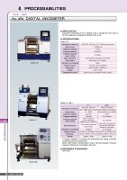 50 GENERAL CATALOGUE4 No. 494 DIGITAL INKOMETER 50 GENERAL CATALOGUEPROCESSABILITIES4 PROCESSABILITIES TACK…(INK) Revolutions of metal roll400, 800, 1200 rpm 100 – 3000 rpm by manualInterval (sec)1 -99999 secDetection methodLVDTProgram operationAvailable(*)Correction factor(K value) settingAvailableData indicationsTouch panel (indicating various data)Data outputMini printer or PC (Option)Automatic roll cleaningOptionElectric sourceAC100V, 1KVA, 50/60Hz DimensionW700 x D320 x H630 mmWeightApprox. 83kgTemperature controlExternal temp. controlled circulator (option)C-1EM-1Revolutions of metal roll400, 800, 1200 rpm 100 – 3000 rpm by manual400rpm (standard)800, 1200rpm upon requestInterval (sec)10 - 999980 (available set to 99.99)Detection methodLoad cellLVDTProgram operationAvailableNot availableCorrection factor(K value) settingMax. 12 points(Linear interpolation between each coecient)Not availableData indicationsTouch panel (indicating various data)Tack value, Temperature(Interval and revolutions indicate on side panelAutomatic roll cleaningequippedNot availableElectric sourceAC100V, 1-P, 50/60Hz, 15AAC100V, 1-P, 50/60Hz, 15A DimensionW720 x D520 x H770 mmW560 x D600 x H570 mmWeightApprox. 140kgApprox. 110kgModel: C-1,EM-1 Model: EM-1 ■APPLICATION During the overprinting of ink in printing, need to manage the tack value of ink,This equipment evaluates the dynamic tack of ink.■SPECIFICATIONS(*) Program operation: To perform the measurement by setting a plurality of rotating speed and interval timeOption: Mini printer, Emulsification device, Special program, Personal computer,Software (by consultation with user)■REFERENCE STANDARDSJIS K 5701 Model: D-2 Model: D-2 Model: C-1