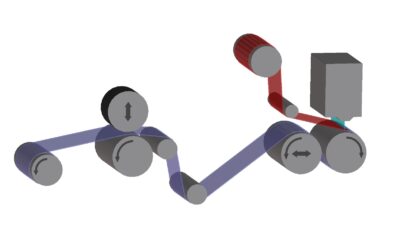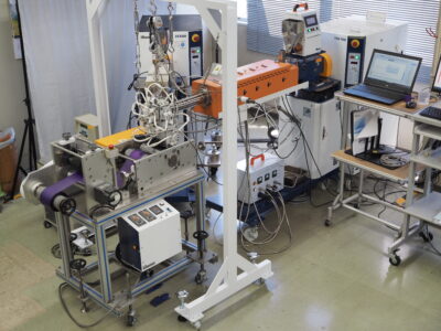 フィルム状に押し出した後巻き取ることでフィルムロールを作成します。 フィルム化することでフィッシュアイや分散・透明度を評価可能です。 また、既存のフィルムに重ねるように成膜することも可能です。